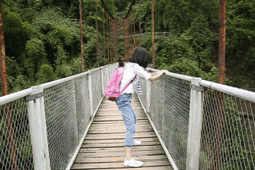 所以有句金玉良言送給大家當(dāng)福利昂~ 聽好了:這座高空索橋無比安全,只要你不作,你就會沒事。膽子小的同學(xué),過橋時不要向下看,不要向上看,眼睛平視前方目的地,慢慢走過去,everything will be ok.