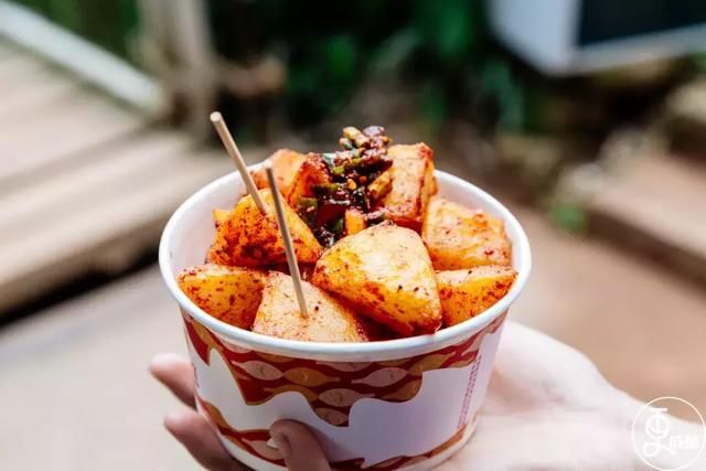“土豆不夠辣噻?等到!我們有小米辣!” 山頂上,那賣土豆的老板轉(zhuǎn)身“瓦”了兩大勺小米辣遞給從市區(qū)來的游客。