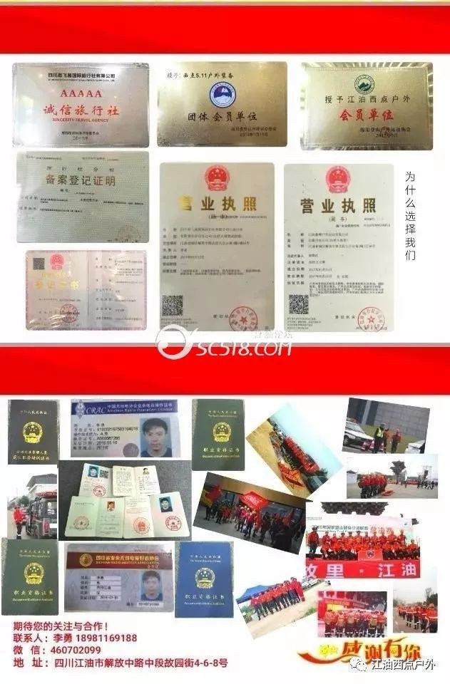 地址:四川江油市解放中路中段故園街6號西點(diǎn)戶外易飛易旅行社江油分社