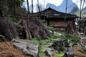 高高的巖下有一座破損的 小廟,有人說那是曾經(jīng)的山門。那年地震山崖崩塌,山路上留下了很多大小不等的巖石