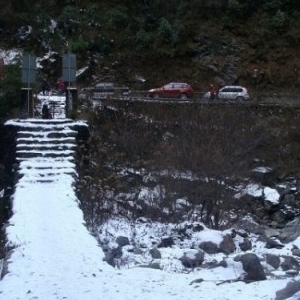 1月3號(hào)幾位車友私下相約一同前往虎牙自然保護(hù)區(qū)看冰掛,因?yàn)榈缆繁└采w安全系數(shù)降底,不適合組團(tuán)前往。 早10點(diǎn)車友們就在優(yōu)護(hù)醫(yī)院集合起飛前往虎牙大峽谷,看冰掛第一站就定在涮涮水大瀑布。